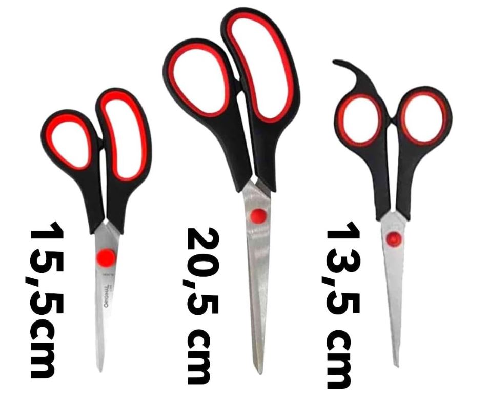•  KIT COMPLETO: Conjunto com 3 tesouras de diferentes tamanhos - 20,5cm, 14cm e 13,5cm, ideal para diversos tipos de corte e trabalhos manuais