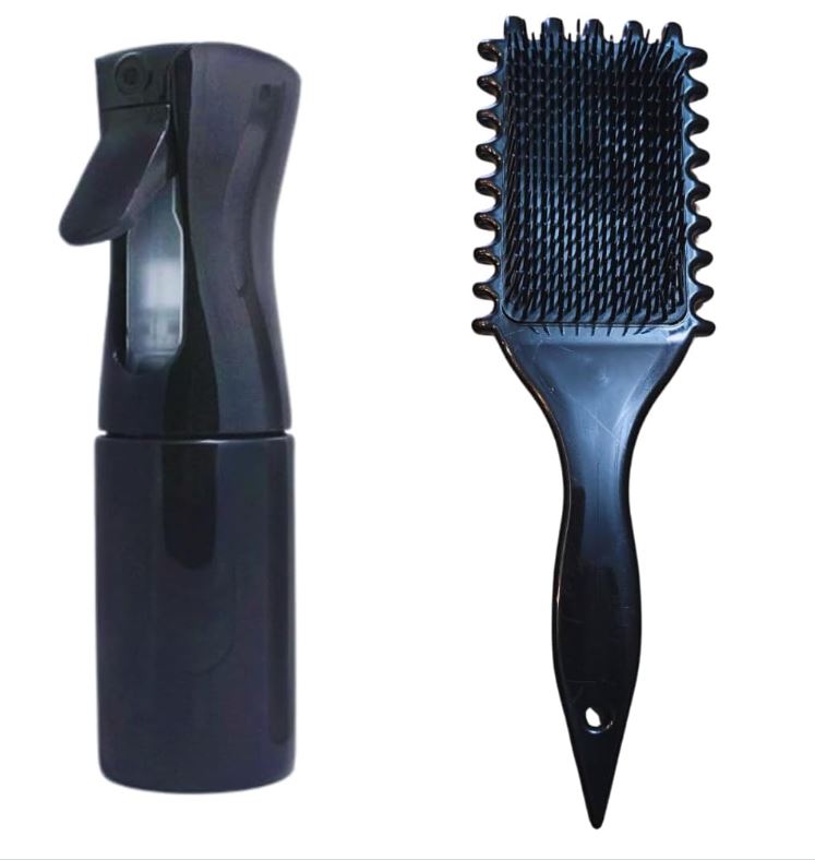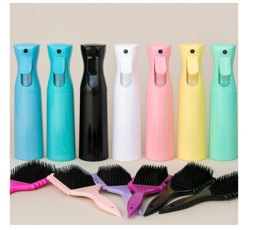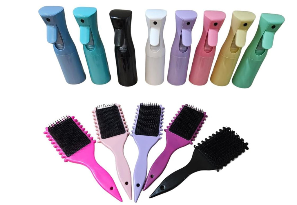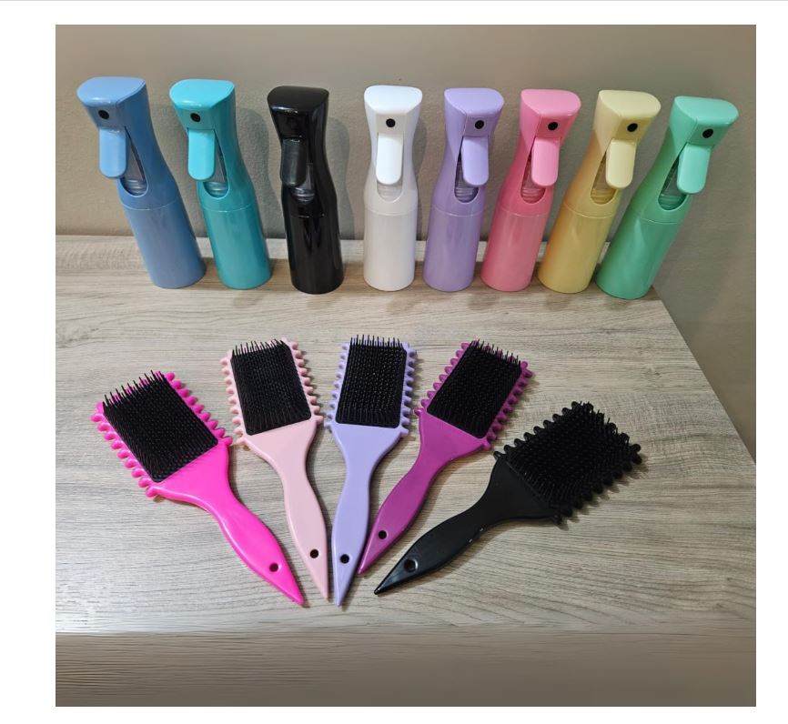 Kit Borrifador Névoa Contínua + Escova para Cabelos Cacheados – Fitagem Perfeita Todos os Dias!